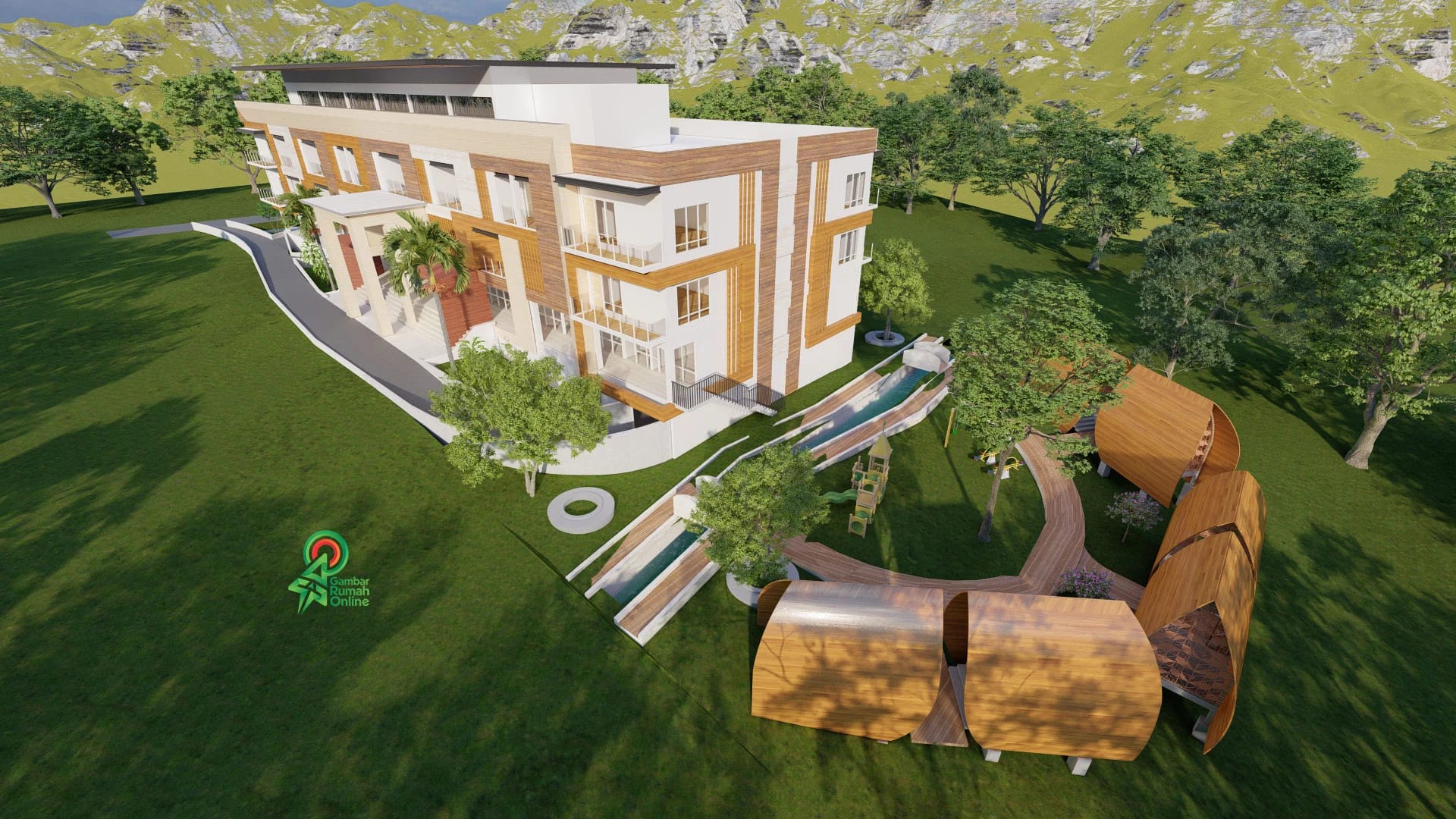 Desain Arsitektur Gedung MTS Amanatul Ummah Pacet Modern