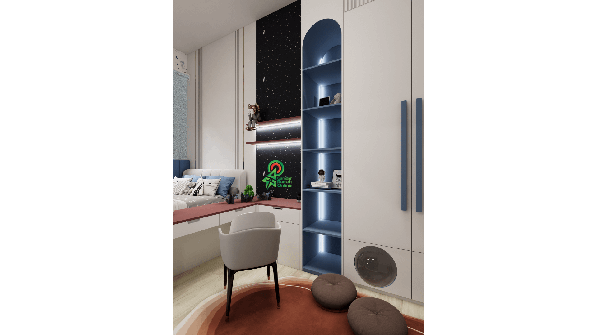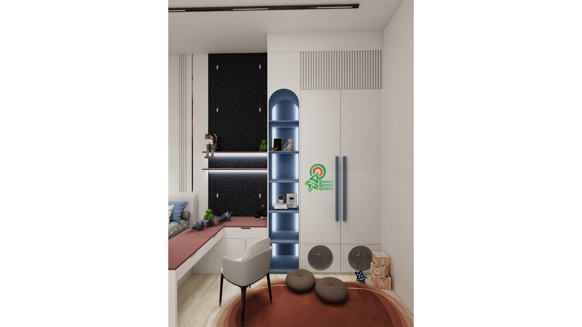 Pada bagian fasad, rumah ini menampilkan nuansa modern luxury yang elegan dan berkelas. Di area interior, ruang tamu, dapur, dan ruang keluarga lantai dua dirancang dengan konsep classic contemporary, menghadirkan suasana hangat sekaligus mewah. Untuk ruang istirahat, terdapat ruang bermain anak, kamar anak lantai satu, dan area gym yang mengusung gaya modern minimalist, praktis namun tetap estetik. Sementara itu, kamar tamu, kamar utama, serta kamar anak di lantai dua kembali menonjolkan karakter modern luxury, menciptakan kenyamanan bagi setiap penghuni.